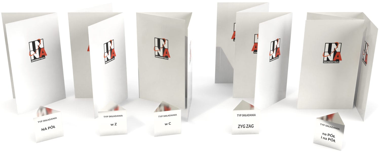 Przy bardziej rozbudowanej treści warto wykorzystać składanie na pół, na trzy w C, w Z albo formę wielokrotnie łamaną. Taki układ pozwala wygodnie rozdzielić ofertę, zdjęcia, cennik i dane kontaktowe, a jednocześnie zachować bardziej reprezentacyjny charakter niż przy zwykłej ulotce jednostronicowej.