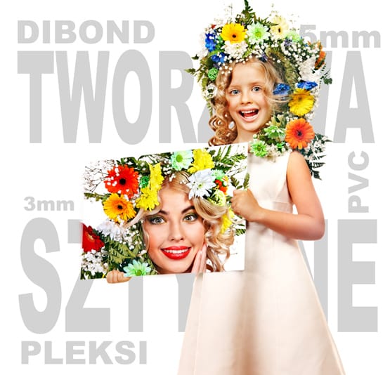 Jest to materiał bardzo lekki, który charakteryzuje się sztywnością i trwałością. Jest wykonany z dwóch warstw aluminium. Połączone są polietylenem o niskiej gęstości. Dibond ma wysoką odpornością na atmosferyczne i chemiczne czynniki, posiada dużą wytrzymałością mechaniczną oraz większą sztywnością niż płyty wykonane z PVC. Płyty idealnie nadają się do zastosowań typu tabliczki, szyldy, numeracje domów oraz ścianki działowe i wiele więcej np. zamiast kafelków w kuchni czy łazience. Łączenie warstw wykonane jest metodami chemicznymi i mechanicznymi – daje to gwarancję odporności na rozwarstwienie. Materiał oklejamy foliami lub zadrukowujemy bezpośrednio UV w zależności od potrzeb i przeznaczenia.